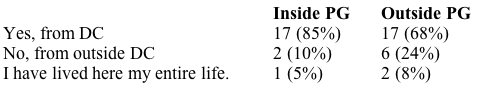 The majority of both groups moved to the Potomac Gardens area from other parts of the District of Columbia. Only a small number moved from outside of D.C.